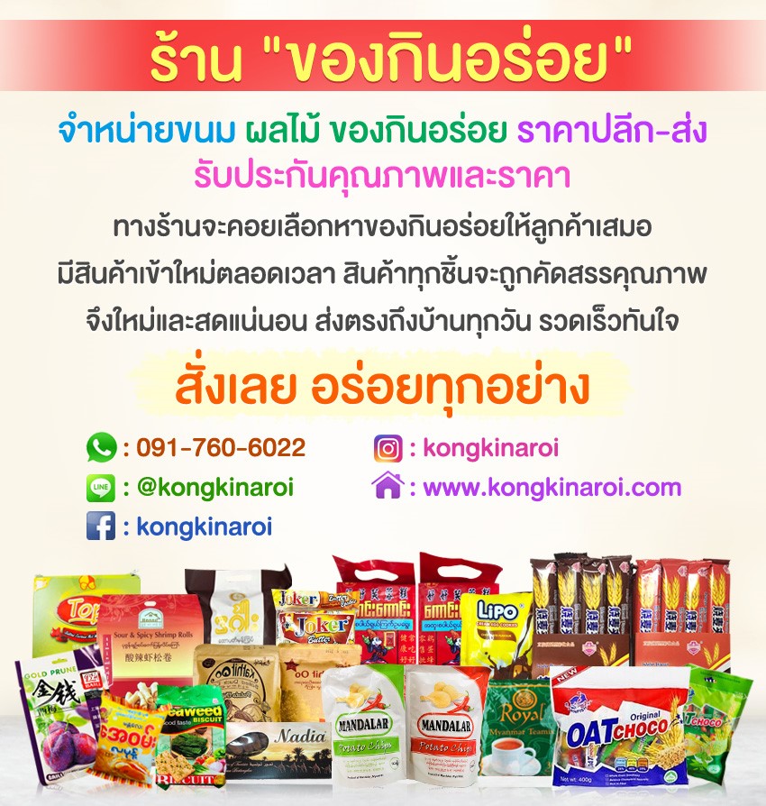 ร้าน "ของกินอร่อย" จำหน่ายของกิน ขนมนำเข้าทุกชนิด อร่อยทุกอย่าง สั่งเลย จัดส่งทุกวัน ราคาปลีก-ส่งยกลัง